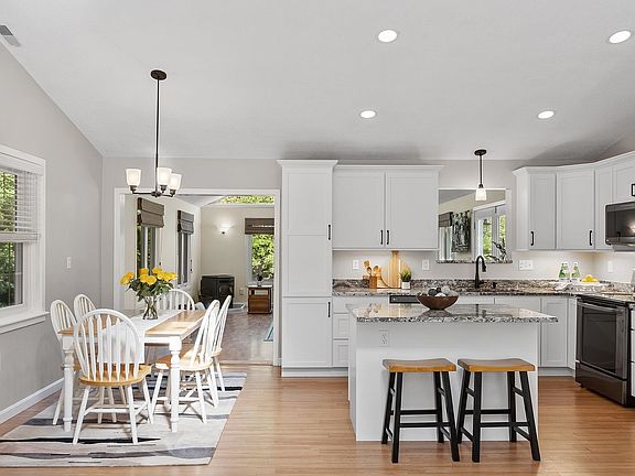 Welcome to 93 Naticook Road! As you enter the driveway, you'll enjoy the relaxing view of the 59 acres of conservation land that abuts this beautiful property. A canopy of trees surrounds you providing a secluded feeling, yet access to all life's amenities is conveniently close by. Upon entering the home, you are immediately greeted by the living room and recently renovated open concept kitchen and dining area with center island, cathedral ceiling & skylight - a perfect space for entertaining. Just off the kitchen is a stunning family room with a wall of windows, cathedral ceiling with wood beam, pellet stove, deck access and picturesque views of the yard. Three large bedrooms and a recently updated full bath complete the main level. Downstairs is an expansive bonus room with a wall of closets, a newly renovated 3/4 bath, the laundry area and access to the garage. The barn accommodates another vehicle, a workshop and a second floor loft perfect for storage or has the potential to be finished with electricity and a connection ready furnace. Come escape to this serene retreat! You don't want to miss this one! Schedule your showing starting Thursday 7/25/24 or attend one of the Open House events - Thursday 4:30 - 6pm, Sat/Sun 11:00-12:30pm