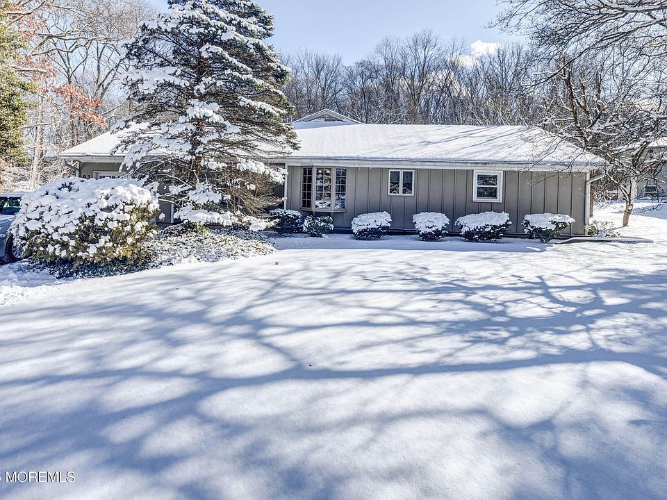 Delightful! Spacious ranch in desirable New Monmouth, with over 1850 sq. ft. of light & bright living space, nestled on over a half acre of park-like property! 3 beds, 2 full baths w/ full basement & attached garage. Numerous upgrades & replacements inc. windows (2022), generator, gutters, garage door & electric panel (2019), furnace, CAC & hot water tank (2017), roof (2016) deck (2021) & more! Steel I-Beam in bsmt! Covered porch front entry w/ newer doors! Expansive entry foyer! Cheerful kitchen w/ breakfast nook! Dining room w/ built-in! Awesome family room addition w/wood burning fireplace! Newer bathroom (2020)! Private, deep backyard with deck & covered gazebo! Steps to shopping, public library & NYC bus stop! Paved turn around in oversized driveway for easy egress.