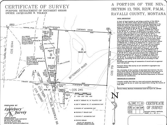 Enjoy river floating, hiking, biking, in miles of mountain trails in the 1,000,000 acres of wilderness bordering Hamilton and the Bitterroot Valley. Two public golf courses in the Valley for the golfers. Ravalli County has plenty of activities for the entire family. There is a bike/running path that goes along highway 93 from Missoula to Hamilton, public swimming pools, about 200 miles to Glacier National Park, and about 280 to Yellowstone National Park. There are a number of very friendly and well supported Farmer's Market. The new survey shows 47.73 acres in 3 parcels.