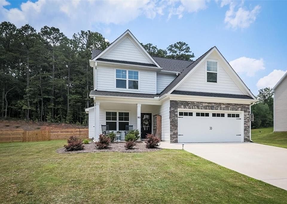 Welcome to 93 Oakdale Way — a beautifully designed 3 bed, 2.5 bath Craftsman-style home in the sought-after Union Station II community. Built in 2023 and barely lived in, this home feels like new construction with all the modern finishes already in place. Enjoy an open-concept main level with LVP flooring, a stylish kitchen featuring granite countertops, stainless steel appliances, tile backsplash, under-cabinet lighting, and a walk-in pantry. A flex room off the foyer adds space for a home office or playroom, while the family room centers around a stacked-stone fireplace and rear staircase. Upstairs, the spacious owner’s suite offers a tray ceiling, double vanity, soaking tub, tiled shower, and walk-in closet. Two additional bedrooms, a full bath, and laundry complete the upper level. Outside, the fenced 0.46-acre lot includes a covered patio perfect for relaxing or entertaining. Smart features, a 2-car garage, and energy-efficient systems round out this move-in ready gem — just minutes from I-20, Hwy 92, and local shops.