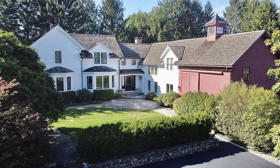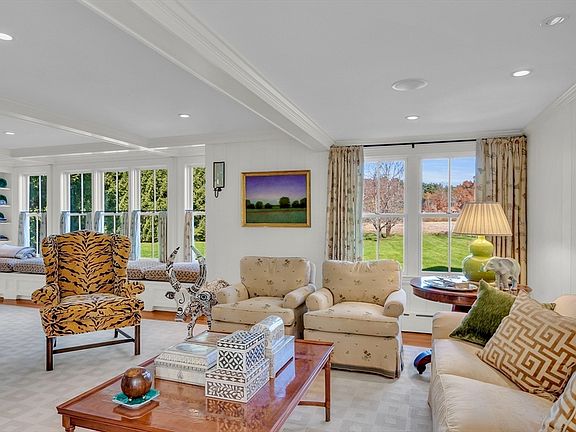 Rarely does a home of such elegance & quality come to market. Set back on a scenic road w/just under 2 acres, the adjoining conservation land on 2 sides allows for privacy & beautiful vistas. This 6,880 sf home combines historic charm w/contemporary amenities. Ideal for both entertaining & intimate family gatherings, it features spacious living room with window seats, a fireplace & abundant windows overlooking the open fields. The 1st floor has a renovated kitchen with high-end appliances, pantry & dining room. A 2-story media room was added in 2006. The family room, library, sunroom & guest room with adjacent full bath, complete the first floor. Upstairs, the master bedroom includes an ensuite bath along with office & 3 walk-in closets. Also on the 2nd floor are 4 additional bedrooms, 2 full baths & laundry room. A separate, heated post & beam barn with 3 parking bays & 2nd floor could easily be converted into an apartment, office or entertaining area. This home is one of a kind!