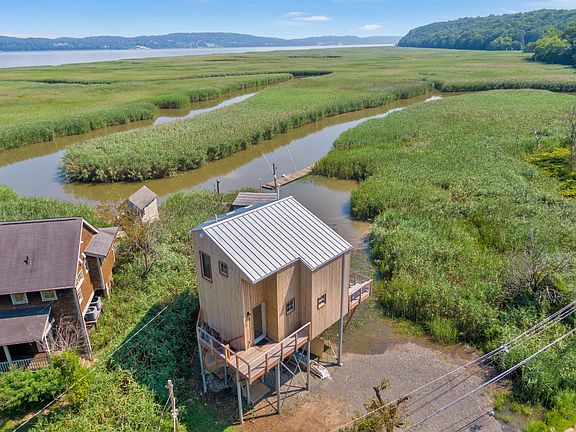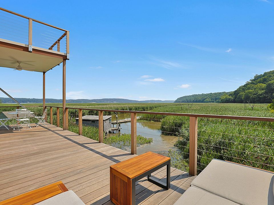 "PIERMONT MARSHOUSE" - Floating above a natural sanctuary with sweeping, ever-changing views of the Piermont Marsh and Hudson River, this architectural jewel feels like stepping into a living Ansel Adams portrait. Each season transforms the landscape into a new canvas, surrounding the home with dramatic panoramas of marshland, mountain, and sky. Thoughtfully crafted with meticulous attention to detail, 93 Paradise Ave offers 2 bedrooms and 2 full baths, anchored by a tranquil primary suite. Here, a spa-like bathroom invites indulgence with a soaking tub oriented toward Tallman Mountain, a steam shower, private deck, and walk-in closet. The Scandinavian-inspired living space exudes modern simplicity, centered by a European wood-burning fireplace. A versatile second bedroom easily doubles as a home office or creative studio. Expansive decks extend the interiors outward, now enhanced with retractable Phantom screens that allow seamless year-round enjoyment of the views - whether curled up by the fire on a crisp autumn evening or savoring a summer sunrise. With direct water access and a private dock, the Hudson River itself becomes part of your daily rhythm, ready for kayaking or quiet contemplation. Beyond the property, the village of Piermont offers an enviable mix of charm and sophistication, from its acclaimed restaurants and farmers markets to art galleries and boutique shops. Outdoor lovers will delight in endless adventures, from hiking Tallman Mountain Park to strolling the iconic Piermont Pier. Just 20 minutes from New York City yet worlds apart in atmosphere, this sanctuary is a rare opportunity for artists, creatives, and discerning tenants seeking inspiration in nature's most elegant masterpiece. 12 month rental, partially furnished, with covered off-street parking and private dock/water access. Tenant pays all utilities. Pets considered. Immaculate credit required. Landlord requires first month's rent, one month security deposit, and one month broker fee.