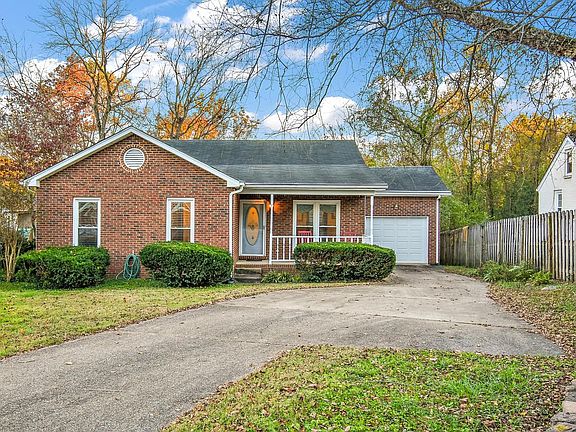 This home is absolutely a hidden gem!! Set amongst trees in a very private, small neighborhood right in the heart of Donelson with 5 miles of hiking trails and a common area for gathering with friends for a bonfire. This home offers 3 nice sized bedrooms with 2 full bathrooms all on one level, wonderful gas log fireplace, separate dining room and eat-in area, and large deck overlooking the large private backyard. The bathroom connected to the primary bedroom has 2 separate vanities and large tiled walk in shower and a linen closet! Nice front porch just perfect for rocking chairs and enjoying the peacefulness this home has to offer. It also has a large driveway and one car garage just perfect for you. Donelson has so much to offer with the many restaurants and so close to downtown and BNA!