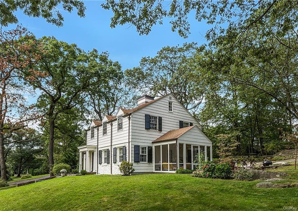 Attractively sited on almost half an acre of private property in historic Lawrence Park West, this 1940 stone and shingle classic colonial has been thoughtfully renovated and expanded by one of Bronxville's premier architects. Beyond the pretty living room with fireplace and formal dining room which access a perfect screened porch and stone terrace, the cooks kitchen adjoins a light filled family room with fireplace overlooking consummately private grounds. The first floor is further enhanced by an incredible home office, easily large enough for two. It can also be a fifth bedroom, as there is a full bath adjacent, and it has it s own no step entrance from the driveway. Upstairs, the large master with ensuite bath enjoys sweeping views east. Three additional double bedrooms and two full baths (one ensuite) provide maximum functionality. The basement bonus space serves well as a gym complemented by a built in laundry area. With central air and an attached garage, no detail has been overlooked here. A rare opportunity for easy living in a private setting