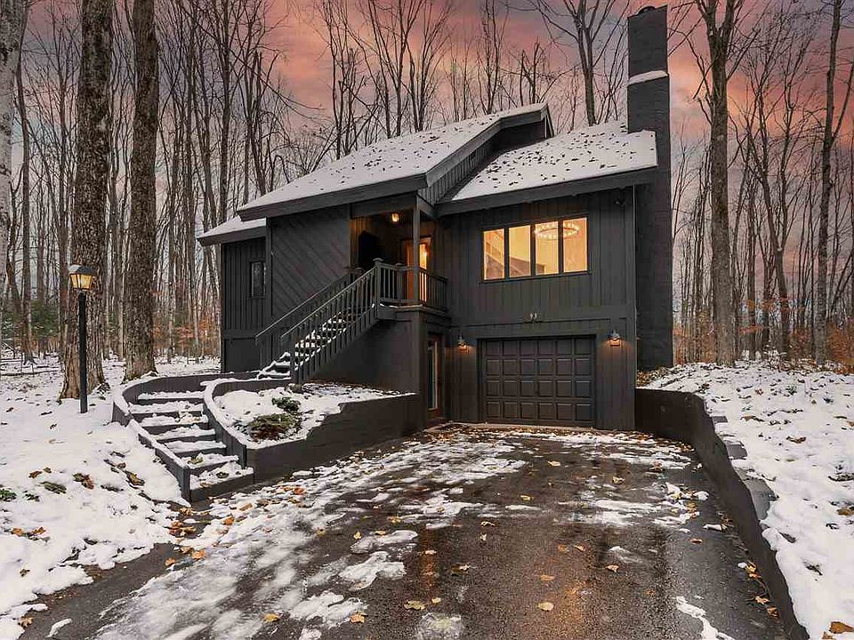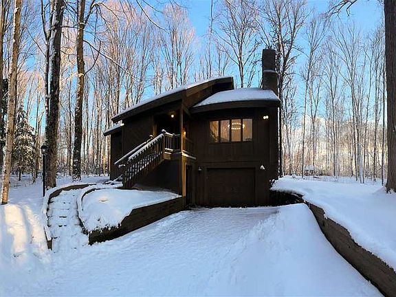 This fully remodeled chalet in Hamlet West offers thoughtful design, custom finishes and an ideal location near The Highlands, Nub’s Nob, and minutes to Harbor Springs and Petoskey. Perfect for year-round recreation, the home features excellent style and natural light throughout. The main living and kitchen area is well designed, centered around a striking stone fireplace. The kitchen includes a beautiful waterfall-edge countertop, great storage, and detailed finishes. The main floor also features a comfortable primary bedroom and stylish full bath. Upstairs are two guest rooms, a full bath, and an office or play area. The lower level provides a spacious guest room, full bath, laundry, rec area, and a great mudroom—ideal for ski gear and outdoor equipment. Additional highlights include an attached single-car garage, wooded lot with myrtle making it green and maintenance free, new roof, and new deck. This is a move-in-ready chalet perfect for year round or vacation living.