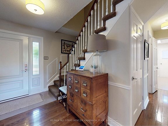 Nestled in the highly sought-after Markham Village community, this charming 4-bedroom* home offers approx 2,000 sqft plus finished basement! Impeccably maintained and updated throughout! The welcoming exterior features mature trees, landscaped gardens, and an interlock walkway, while the elegant interior showcases hardwood flooring, crown moulding, wainscoting, and California shutters. Designed for both comfort and entertaining, the main floor includes an inviting living and dining area, a warm family room with a wood-burning fireplace and walkout to the deck, and a stylish eat-in kitchen with quartz countertops, stainless steel appliances, a chefs desk, and direct access to the backyard. Upstairs, the spacious primary bedroom offers a walk-in closet and 4-piece ensuite, complimented by two additional bedrooms and a full main bath. The finished basement adds valuable living space with a large rec room, workshop, and abundance of storage. Outside, the private backyard oasis features ample green space, an inground heated pool, a large deck with a retractable awning, and built-in outdoor speakers. Ideally located near top-rated schools, scenic parks, Markham Stouffville Hospital, and the vibrant shops and eateries of Historic Main Street, with easy access to Highway 407, the GO Train, and Cornell Bus Terminal for seamless commuting. *4th Bedroom has been combined with Primary to create an extra large Primary Bedroom, Buyer can convert to 4 bedrooms, if desired.