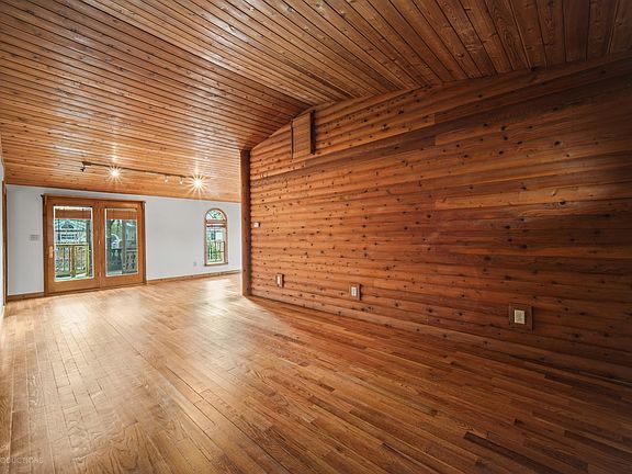 Gorgeous Waterfront Log Home. Two bedroom 1 bath with an attached heated garage and boat dock! Upgrades include hardwood floors, custom lighting & hickory cabinets. Stove, refrigerator, microwave and dishwasher included. French doors open onto a multi tiered 42x14 deck w/screened gazebo & 11x21 dock. Stunning stone fireplace w/log mantle. Pull down stairs in garage for storage plus a storage shed w electric. Plenty of parking plus boat storage area. Paver brick walkways, 4 exterior electric outlets, 3 exterior water spigots, just a lot of nice touches. Property borders common area for added privacy. You'll feel a touch of the North Woods, just closer to home. A Must See!