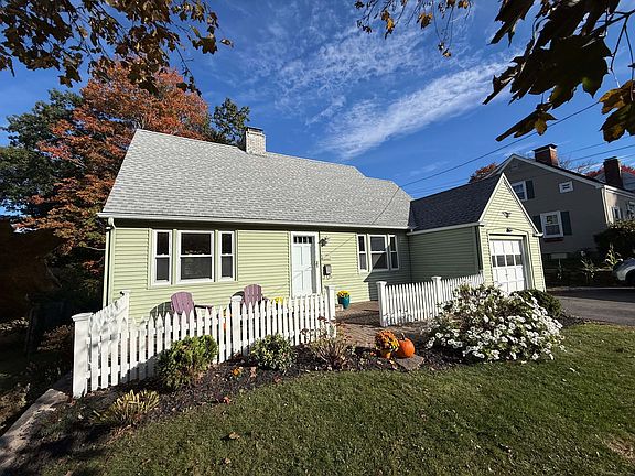 Welcome to this charming Cape-style home on the Bowers Neighborhood offering 2 bedrooms-with the potential for a 3rd on the lower level-and 2.5 baths. The entire home has been freshly painted, and hardwood floors run throughout, adding warmth and character to every room. The spacious kitchen features stainless steel appliances, ample cabinet and counter space, and a convenient breakfast island with extra storage. Just off the kitchen, a bright dining room is ideal for family meals and gatherings, while a nearby half bath adds everyday convenience. Relax in the inviting, open-concept living room with its cozy fireplace-perfect for those chilly New England evenings. A separate sitting area or small office nook completes the main level, providing flexibility for work or relaxation. Upstairs, you'll find two comfortable bedrooms and a full bath. The lower level includes a full bath and a finished room that can serve as a third bedroom, guest suite, or playroom. Step outside to enjoy the level, fenced-in backyard featuring a brick patio and garden shed-an ideal space for entertaining, gardening, or simply relaxing outdoors. The attached garage provides additional convenience, especially during winter months. Located just minutes from shopping, dining, and local amenities, this home perfectly blends comfort, functionality and a fantastic location.
