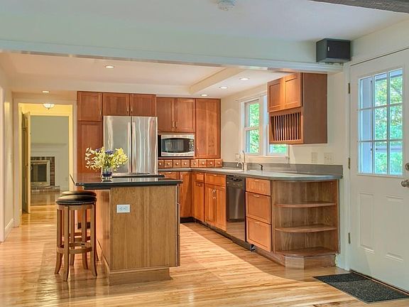 Back on market! Newly refinished hardwood floors in every room! Plus a fresh coat of paint throughout the home. This 4 bedroom, 2 bath brick-red colonial is set in a friendly, tree-lined neighborhood on over an acre of lawn, gardens and wooded areas. Easy flowing floor plan with a front-to-back living room great for entertaining with a fireplace, wet bar, and sunny nook to cozy up. The dining room with french doors opens to the kitchen and spacious family room with a wood stove for warm romantic nights. The kitchen has been updated with granite and corian counter tops, stainless steel refrigerator and island eating area. Head downstairs and you will find a full basement with an office, exercise or recreation room. Harvey windows installed throughout the home. Great location in Bolton. Enjoy top rated schools and an excellent commuter location. Also a variety of new restaurants nearby plus shopping, and several golf courses.