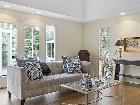 Appealing from the outside and inviting as you walk in, this unique Lincoln home has it all! Beautiful landscaped lot with lush gardens that lead to conservation trails is perfect for walking and enjoying the outdoors. This custom house has a primary suite with new spa master bath on the first floor. Cozy and light filled living room with brick hearth fireplace that is attached to a sunny greenhouse. A renovated stunning kitchen with walnut countertops and stainless steel appliances leads you to the lovely dining room with fireplace. Upstairs, there are three bedrooms with a full bath. Outside the kitchen is a large private deck. Above the two car garage is a wonderful one bedroom accessory apartment with a bright kitchen, spacious living room and bedroom that has a private balcony overlooking the gorgeous gardens. A Must See!