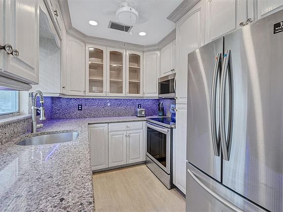 55+ Community. Well-maintained 2BR/2BA one-story villa in Kings Point. Updated flooring, kitchen, and baths with stainless steel appliances and modern finishes. Freshly painted with new fans, light fixtures, and electric zebra blinds in the living and dining room. Can be rented with or without furniture shown in photos. Quiet, friendly neighbors and a responsive landlord who lives in the community. Enjoy Kings Point's full suite of amenities including pools, clubhouse, tennis, and more.
