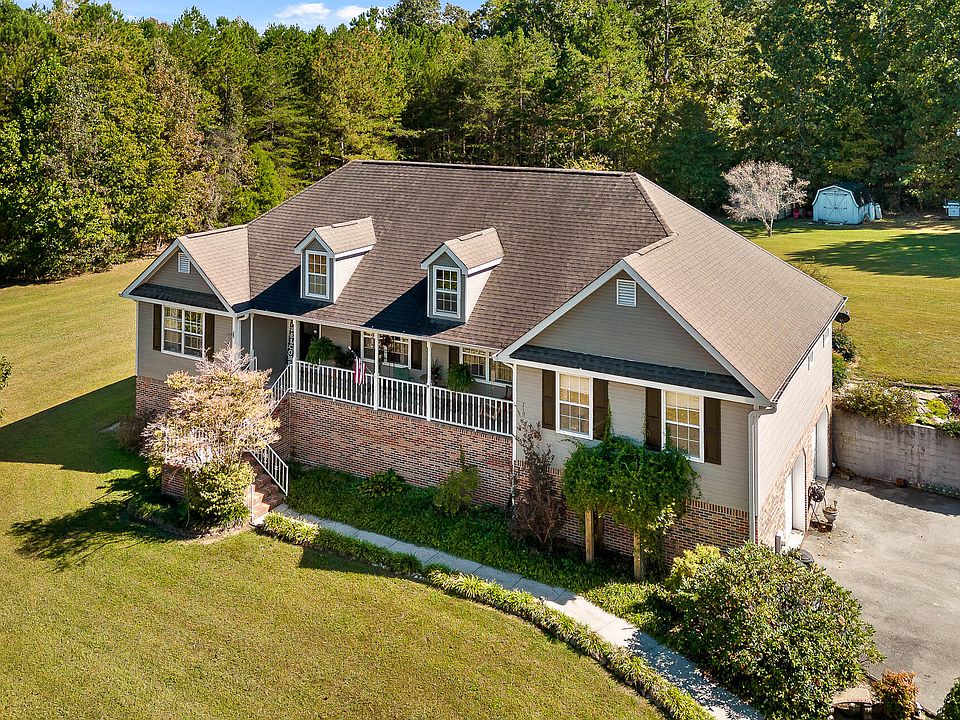 On the market for the first time, this custom built home is situated a short twenty five minute drive from downtown Chattanooga, and a mere seven minute drive to the heart of historic Chickamauga. No details were missed in the construction of this home by the owner, from the ground up. Starting with the foundation, the excavation for the basement went the extra mile, rather 16'', to ensure that should the basement ever be finished, even with a drop ceiling, you would still have a nine foot ceiling height. During construction, a full perimeter french drain was added, along with additional waterproofing to the foundation so that the basement would never get damp or even have a tinge of a musty smell. The same attention to detail ensued with the planning of the upstairs, split bedroom floor plan. The home is centered around a casual and cozy den, which flows perfectly into a formal sitting area (or dining area, owner's choice) by the fireplace. Right off of the sitting area you will find the breakfast nook and kitchen. The kitchen is well appointed with dark granite countertops, contrasted with warm-toned wood cabinets. The primary bedroom is set apart in the back of the home, off of the sitting area. This large bedroom, with an equally large bathroom features separate closets, and access to the beautiful back deck - the perfect setting for your morning coffee. The other two bedrooms are located on the front of the home, on opposite sides of the den. There are two stairways in the home. The first leads up to the attic where you will find all the additional storage you could ever want, and the second leads down to the basement. The basement runs the entire length of the home and is open to the garage. The basement could be divided up into a garage space and a separate finished bonus space, complete with a full bathroom and plumbed for a kitchen or wet bar! This whole package is set amongst 3.5 acres of flat, scenic land! Schedule your showing today!