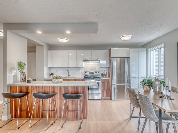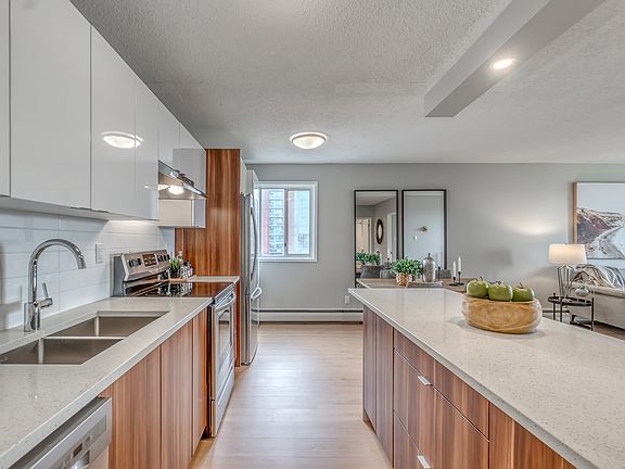 The renovated rental suites at Centennial House are available in 1 or 2 bedrooms, and are all pet friendly. Residents love the floor-to-ceiling windows and private balcony overlooking the stunning views of 17th Avenue and downtown Calgary. The community also features an expansive on-site fitness centre, resident lounge, laundry facilities, professional on-site management, and lots of parking space (street parking available).