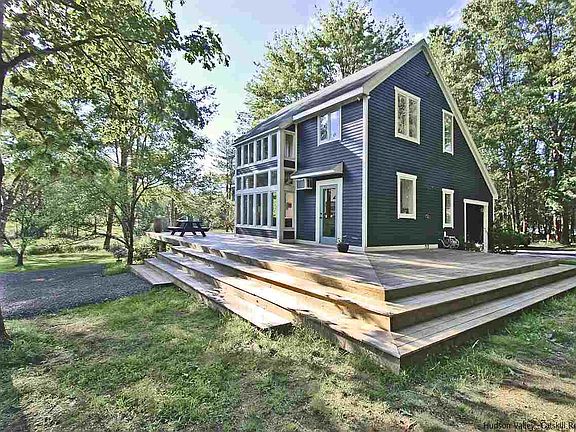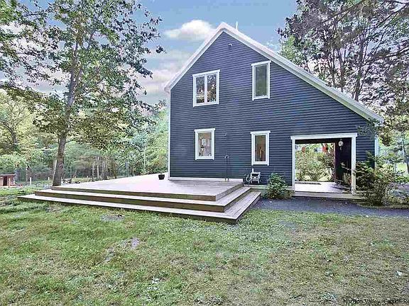Enter your private drive pass the early barn and through 6 acres of rolling meadow and fields to quiet solitude and your private retreat designed by an award winning architect in the Hudson Valley Barn style. Bright Post and Beam sun filled interior with soaring 10 ft. beamed ceilings, and huge windows that afford magnificent views of the property. Easily manageable with passive solar energy efficiency and well thought out spaces. Large outdoor covered room. Sweeping rear deck and patios for warm weather relaxation or entertaining. Sweet potting shed and fenced garden areas. Outdoor shower. 3 acres of electric dog fencing. Newly painted interior and exterior. New gravel driveway. Exceptional 2 story Barn with stalls and Loft ideal for an artist or to house your farm animals. The pristine beauty of this property is enhanced by the babbling brook, meadow, woods fruit and flowering trees. A perfect and private location that is a short walk to the Hamlet of High Falls and restaurants, shops, swimming and hiking. Minutes to Mohonk Preserve and Lake Minnewaska. An exceptional property not to be missed!