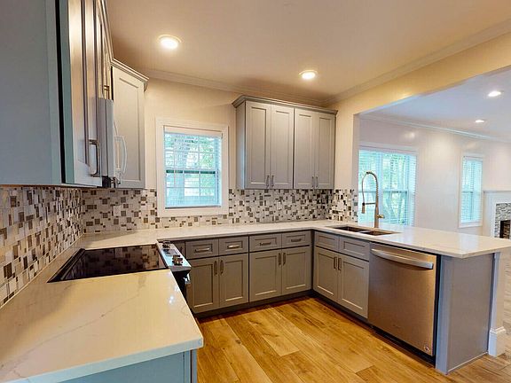 Neutral paintLaminate wood flooringLarge screened in patioUpdated kitchenCrown moldingFully fenced backyard