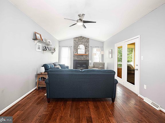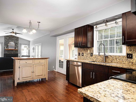 Gas fireplaceFinished lower levelModernly designed eat-in kitchenSpacious backyardCathedral ceilingWood floorsWarm wood finishes