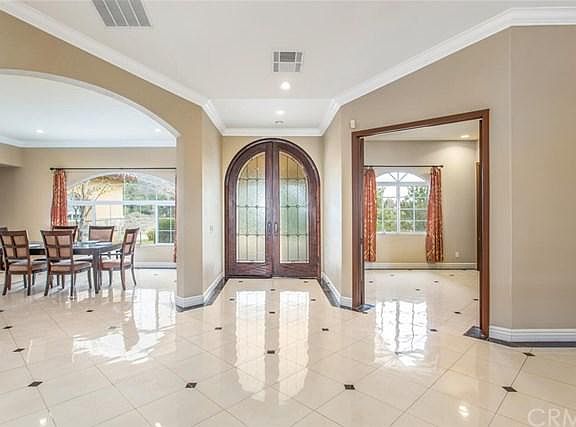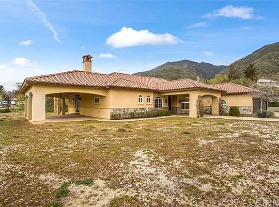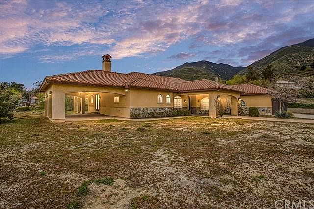 One-of-a-kind custom home sitting at the top of a private, gated drive with panoramic city light & mountain views. Stunning leaded glass double doors as you enter leading to the formal step-up living room with a large decorative glass centerpiece chandelier and nearby private office with its own 1/2 bath. Oversized crown molding & polished marble tile flooring throughout most of the main living area. Spacious formal dining room with large picture window, gourmet kitchen with granite countertops, upgraded cabinetry, gas cooktop with hood, trash compactor, refrigerator, walk-in pantry, & breakfast bar seating. The kitchen is open to the elevated family room with mountain views, a gas fireplace & access to the private, covered wrap-around rear porch. Two of the bedrooms are on one side of the house, both are nicely sized with large closets & share a jack-and-jill bathroom with double sinks & a glass-enclosed marble shower/tub combo. The spacious master suite also features a double door entry, ceiling fan, gas fireplace, views from every window, & access to its own private patio. The ensuite master bath includes an oversized marble 2 person shower, jetted soaking tub, dual vanities, a separate toilet area, & a large walk-in closet. Utility room complete with washer & dryer directly off of the oversized 4 car garage. Custom-built matching gazebo perched above the rear yard. This versatile property offers privacy, tranquility, & exceptional views with convenient freeway access.