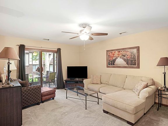 Step right into this well-maintained ground-floor condo with 2 bedrooms. This cozy home is in excellent condition, boasting 2 full bathrooms, including an ensuite in the master bedroom. Enjoy the convenience of in-unit laundry and a 1-car attached garage. The eat-in kitchen is a highlight, featuring stainless steel appliances, modern Corian countertops, a seamless sink, and beautiful hardwood laminate flooring. Flooded with natural light, the kitchen extends seamlessly through dual sliding doors that lead to a screened-in sun porch. Retreat to the spacious master bedroom, complete with an oversized walk-in closet and a generously sized private bathroom. With newer carpeting and a neutral color palette, you can move in with ease and require no immediate changes. Please note that this unit is not available for rentals and is not FHA-approved; it is suitable for conventional financing or cash transactions only. Don't miss your chance to make this fantastic condo your new home!