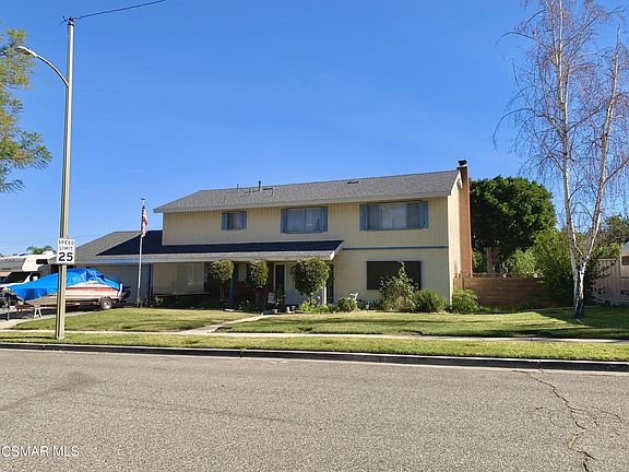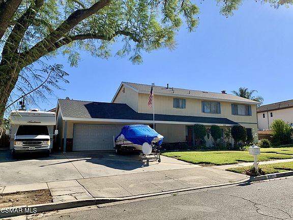 RARE Find! Located in the desirable and sought after Sinaloa Highlands in Simi Valley. This is a ONE OF A KIND 2 story home, with 5 bedrooms, 2.5 baths AND a large, 1400 SF 2 bedroom, 2 bath attached GUEST HOUSE- perfect for extra rental income or in-law quarters! An opportunity doesn't come on the market like this very often! Lots of square footage with a 2,448 main house and an extra-wide and deep lot of 14,280 SF with RV access. Spacious living room, formal dine and a remodeled kitchen with granite counter tops and breakfast bar, gleaming wood laminate flooring, plus crown moldings. Downstairs bedroom is used as a den. Upstairs master suite with is & her closet and an updated bathroom. GUEST HOUSE enjoys a full kitchen with lots of cabinet space, breakfast bar, dine, living room, fireplace and bar area, plus two large bedrooms and its own laundry area. Close to parks, shopping, dining and more!