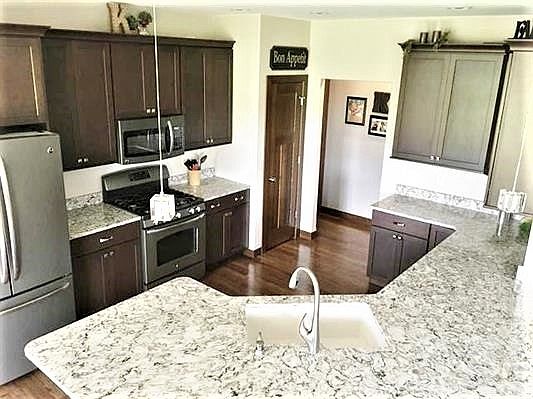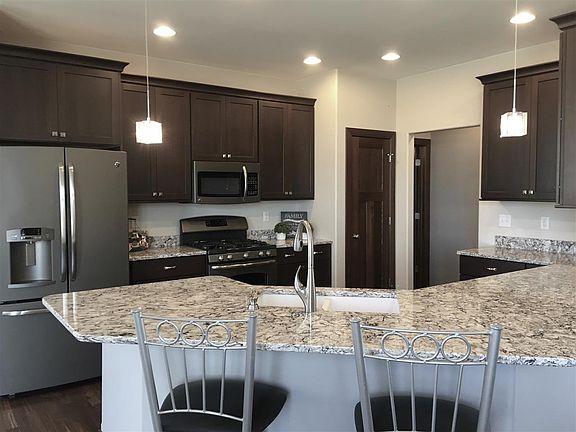 Fabulous Fox Ridge subdivision with amazing golf course view out your back door! You will appreciate this spacious and open floor plan with volume ceilings, expansive windows & custom finishes throughout this 5 bedroom, 3 bath home! The main level living area is inviting & enhanced with warm color palettes & tasteful decor. The gourmet-style kitchen includes quartz counters, island/breakfast bar, rich wood cabinetry, and pantry. The dining area and great room flow perfectly, creating function and comfort with beautiful back yard views. Retreat to the private master suite which includes an awesome spa-style bath with tiled walk-in shower and dual vanities, as well as ample storage and counter spaces. The spectacular lower level will wow you! It offers another level of informal and open living areas--perfect for play room, game room, and theatre or TV room options, as well as 2 additional bedrooms and plenty of storage room, too! The outdoor extras include lovely landscapes, irrigation, a covered deck, and oversize garage. Picture perfect and move-in ready!
