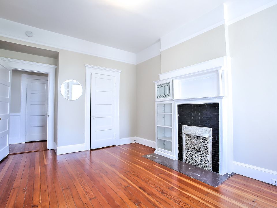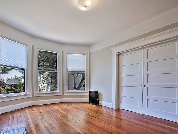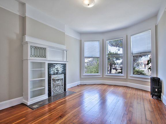 Light-filled three bedroom and one bath unit located near Alamo Square. Eat-in kitchen with stainless steel appliances including gas oven. Bright and airy living room with decorative fireplace, hardwood floors throughout, second bedroom can be opened-up to create a larger living room. Light-filled generous sized bedrooms with closet storage.