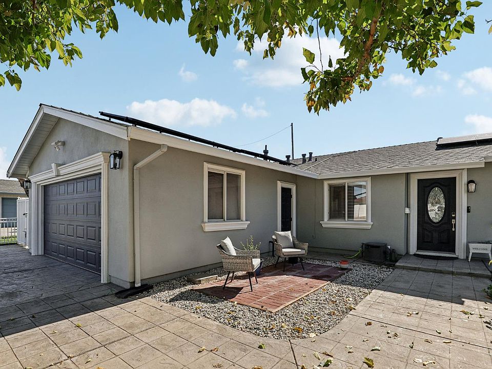 A Charming Home where comfort, character, and efficiency come together. Nestled in a neighborhood with wide streets and designated bike lanes. A corner fenced lot with a large shady tree and rose bushes. Inside, you're greeted by soft natural light, fresh modern colors, and elegant bamboo flooring that flows through most of the home. Every room feels thoughtfully designed from the ceiling fans that keep the air cool and comfortable, to the cozy built-in wood-burning oven that invites family and friends to gather. The kitchen has been beautifully updated with stainless steel appliances, offering the perfect space to cook, laugh, and connect. Both bathrooms have been completely remodeled, featuring modern tile and finishes that make daily routines feel just a little more luxurious. A home designed with efficiency; Trane HVAC system installed in 2022 (95% efficient furnace, 16 SEER AC condenser, new ductwork) keeps energy costs down. And with an 11.02 kW solar panel system, you'll enjoy true energy independence. Your private backyard oasis has a sparkling in-ground pool surrounded by a solid metal privacy fence and stamped concrete patio with a cover for shade. The gated driveway fits three vehicles and the garage is wired for an EV charger.