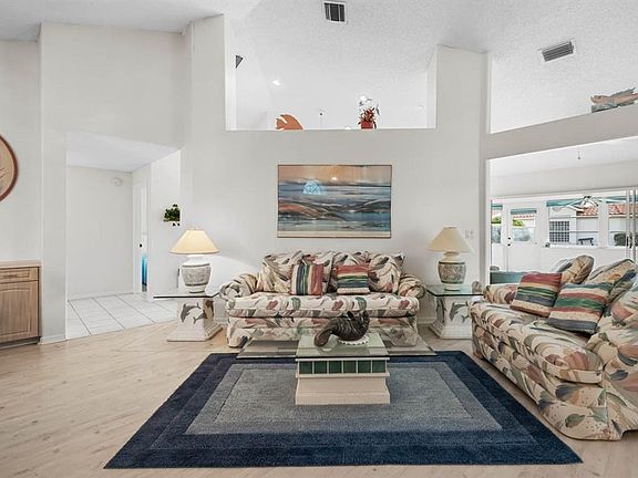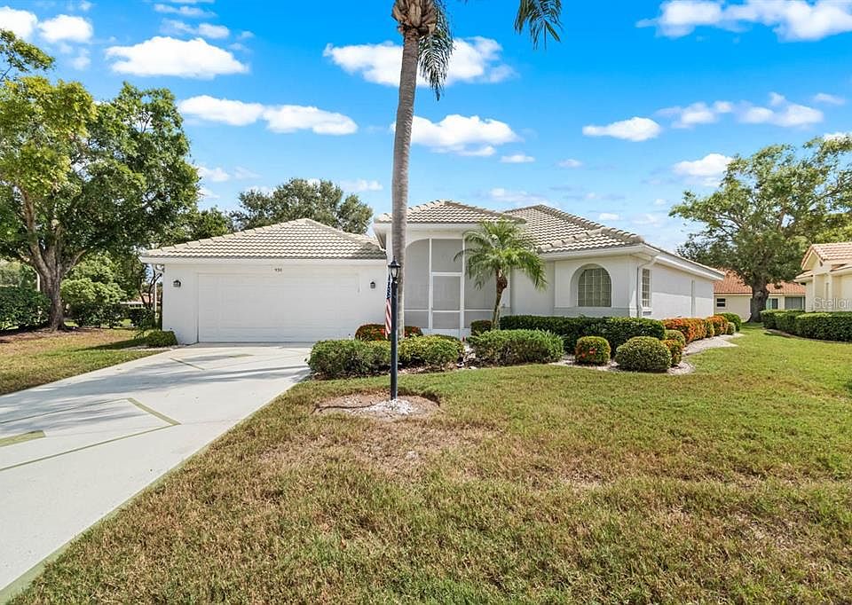 This rare UNATTACHED single-family-home-style condo is a FURNISHED, MOVE-IN READY dream presenting a SCREENED FRONT PORCH, 2-bedrooms, 2-bathrooms, a 2-car attached garage with driveway, GOLF CART, SCREENED LANAI, and an enclosed FLORIDA ROOM! Located on a CUL-DE-SAC in the active and engaging 55+ community of Kings Point, this beautiful property would make a low maintenance home away from home, or the perfect full-time residence. NO CARPET to contend with - tile and luxury vinyl plank flooring throughout! The foyer has a convenient coat closet and ushers you into the Great Room splitting the spacious living and dining areas with their HIGH CEILINGS and PLANTATION SHUTTERS. The kitchen is equipped with a closet pantry, BREAKFAST BAR, desk build-in, and a dinette for informal meals. There's a sitting room area that accesses the large Florida Room through sliders. The Primary Suite features DUAL WALK-IN CLOSETS and an EN-SUITE BATHROOM complete with a DUAL-SINK VANITY, SHOWER with SEPARATE SOAKING TUB, water closet, and linen closet! The secondary bedroom is a comfortable size, and the secondary bathroom is outfitted with a single-sink vanity and tub/shower combination. There's an interior laundry room with its own cabinetry, and the screened lanai is the perfect spot for grilling! Kings Point is a bustling gated and golf cart friendly community known for a myriad of recreation facilities, indoor/outdoor heated pools, a state-of-the art fitness center, arts, crafts, tennis, pickle-ball, lawn bowling, auditorium with 800+ seating and over 200 clubs & activities. Begin the process of making this home your personal paradise by scheduling your showing today!