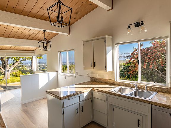 AMAZING panoramic ocean, city, and mountain views in this recently renovated 4 bedroom, 2.5 bath house with high beam ceilings. European oak hardwood floors, recently renovated primary bathroom, newly renovated second bathroom, new HVAC system, and updates throughout the house. Great indoor-outdoor flow leads you from the main living areas of the house to a beautiful backyard overlooking the city and ocean. Located minutes away from Palisades village, the beach and fantastic hiking trails. 2 car garage, Tesla charger. Owner pays weekly gardener. Renter pays utilities.