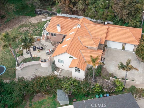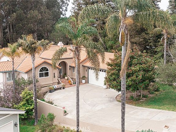 Located on a quiet cul-de-sac, in one of the most desirable neighborhoods on the Arroyo Grande Mesa. This gorgeous custom home is on a private half an acre lot, surrounded by lush mature landscaping and a beautiful Eucalyptus Grove. The private back yard faces the South West with lovely elevated decks which are great for entertaining and enjoying the ideal Central Coast weather. The natural light filled open floor plan interior of this home has vaulted ceilings throughout with a modern Mediterranean feel. The 3 oversized bedrooms with 3 on suite bathrooms for each. The 3 bedrooms have been recently completely renovated as well as the 2 bathrooms are newly built-construction was completed February of this year. The living area is highlighted by a grand fireplace and adjoining entertaining spaces. There are two dining areas, one overlooking the living area and a dining area surrounded with windows overlooking the lush colorful trees. The kitchen was thoughtfully designed with new quartz counter tops, plenty of cabinet storage and a center island cooktop and large counter seating area for entertaining. The primary bedroom has a modern fireplace with sitting area and its own separate exterior deck with a built in hot tub. The ensuite bathroom is appointed with a luxurious soaking tub and separate shower, and a built in Sauna. The primary bedroom closet has plenty of storage. The cheery laundry room is spacious and filled with cabinets. There is also a wine closet. The amazing oversized three car garage has ten foot high doors, a huge window and excellent lighting and an incredible amount of custom cabinets through out for significant storage space. This location is conveniently located close to shopping, three golf courses and easy access to beautiful beaches, amazing wineries, dining and all the gorgeous Central Coast has to offer.