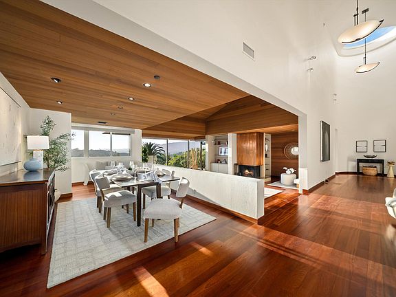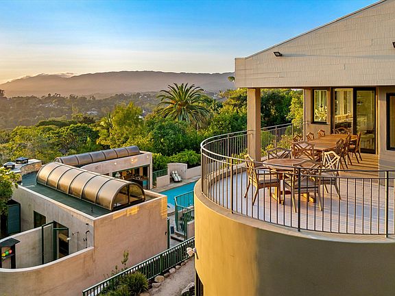 ocean, mountains, and Hope Ranch hills, transforming every gathering into an experience. The 1st floor Brazilian Cherry wood floors are exquisite. The first floor Primary Suite offers awakening views and a spa-like bath finished in cherry wood and granite with a generous walk-in