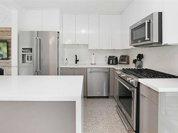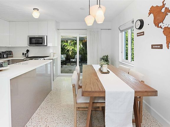 Step into timeless style and modern luxury with this beautiful 3 bed, 3 bath pool home just minutes from North Lake and the beach. This home has been meticulously maintained and thoughtfully upgraded through out the years, showcasing original terrazzo floors and an open floor plan perfect for entertaining. Enjoy a sleek newer kitchen with Italian two-tone cabinets, waterfall countertops, and stainless steel appliances. Featuring two primary en suites plus a guest bedroom and full bath, the layout is perfect for entertaining or hosting. Outside, your private tropical retreat awaits—complete with a gorgeous pool, summer kitchen, outdoor TV, lush landscaping and a shaded canopy. The Florida lifestyle at its finest!