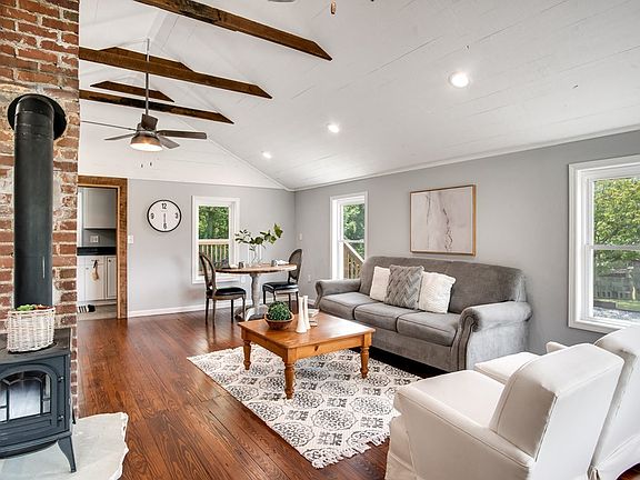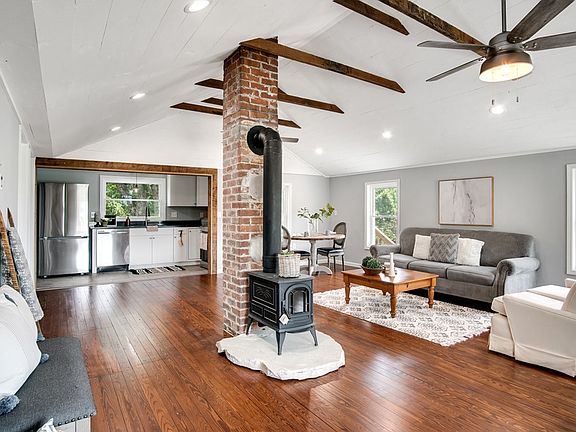 The work has been done! This 2 bedroom, 2 bath home has been completely renovated including new vinyl siding, a metal roof, new HVAC system, all new kitchen appliances, granite countertops, new windows and doors, completely renovated bathrooms, refinished hardwood flooring in living areas and a large back deck, perfect for entertaining! You'll love the planked ceilings, open concept living, dining and kitchen areas with exposed wood beams and the huge primary ensuite! There is a detached one car garage and an almost level back yard. Conveniently located just 20 minutes to Asheville and 15 minutes to Waynesville, this home is move in ready!