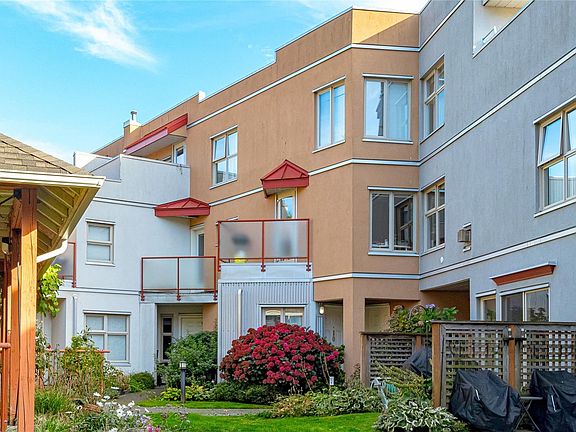 Welcome to Park Place! Updated 2 BR, 1.5 bath townhome with a walk score of 96! Leave your car in the secure underground parking and enjoy easy walkability for all your errands! This home is ideally located in the private, gated, inner courtyard of this well-maintained, remediated building offering exceptional security rarely found in the downtown core. Set back from the road with greenspace at your doorstep is this spacious 3-level home with modern open-concept living / dining area centered around a cozy gas fireplace, complemented by an updated moderrn kitchen and a convenient main-level powder room. Upstairs, you’ll find two comfortable bedrooms - the primary bedroom has a deck overlooking the courtyard -perfect for your morning coffee! Nicely updated 4 piece bathoom & insuite laundry. Other features include:storage locker, guest suite, bike parking & underground parking. Pets welcome - one dog of any size, or two cats! This is great place to call home! Call your Realtor to view!