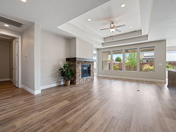 Stylish and functional living on one level in the beautiful Brio subdivision. 3 bedroom, 2 bath with LVP in the living area and carpet in the bedrooms for comfort. This home features quartz kitchen countertops, a reverse osmosis system and a versatile murphy bed--perfect for guests or a multi-use space. RV parking on a paved space next to the 2 car garage, xeriscaped lot with mature trees and a covered patio to enjoy it all. This home is ready to impress!