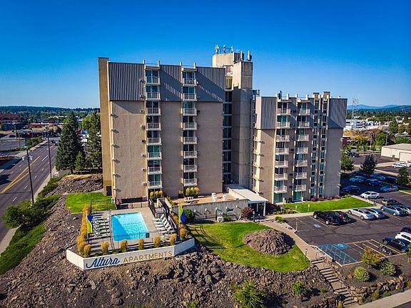 Located on the 4th floor, this apartment is north facing and offers stunning sunrise views over Spokane. This apartment has plank flooring throughout the living room and kitchen area to give your home a clean, modern look. The apartment includes a generous sized living room, a bright interior, and a glass sliding door that leads out to your own private balcony. Relax in our heated seasonal pool or barbecue with friends by our fire pit!