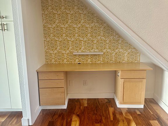 Modern tileExtra storageThoughtfully designed living spaceWaterfront retreatBuilt-in desk nookWalk-in showerWarm hardwood floors