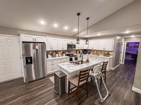 Stunning stone fireplaceFully fenced yardQuiet rural surroundingsSpacious kitchenOpen floor planVaulted ceilingsLiving and dining areas