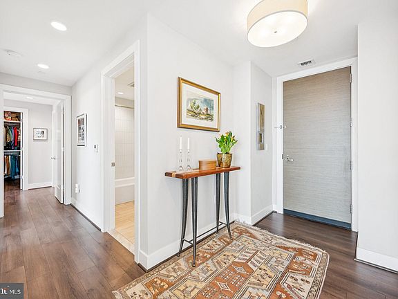 Welcome to 1511 with its combination of modern design, panoramic views, and an unbeatable location. This stunning 2-bedroom, 2-bath corner residence with garage parking and storage unit offers a rare opportunity to own one of the premier homes at 930 Rose Avenue, perched high above the Canopy by Hilton Hotel in the vibrant Pike & Rose community. Enjoy panoramic eastern and southern views that capture sunrises over downtown Bethesda, the skyline of Washington, D.C., and the distant vistas of Virginia, a true visual feast of light and landscape. Whether birdwatching in the morning or basking in the abundant natural light that fills the home throughout the day, this residence brings the outdoors in at every turn. Built in 2018 and meticulously maintained by its original owner, this home blends modern luxury with thoughtful design. The stylish secure entry with concierge service and elegant lobby seating create a sophisticated welcome. Then to 1522 with its private foyer with coat closet, and prepare to be amazed by floor-to-ceiling windows, 9- and 10-foot ceilings, and sweeping views from every angle. At the heart of the home is the chef-inspired Euro-style kitchen, showcasing Italian cabinetry, a quartz waterfall island with seating for three, and premium stainless steel appliances. The kitchen opens seamlessly into the sun-drenched living and dining areas, where sliding doors lead to a private balcony, the perfect place to relax or entertain while surrounded by captivating views. Down the hall, you will find a full-size front-loading washer and dryer, a beautifully finished hall bath with glass tile, and a secondary bedroom ideal for guests or a home office, with bright southern exposure. At the end of the hall awaits the primary suite, complete with a custom walk-in closet and a spa-like en suite bath featuring dual quartz vanities, an illuminated LED mirror, mirrored medicine cabinet, oversized glass-enclosed shower, and private water closet. Residents of 930 Rose enjoy an exceptional suite of amenities, including concierge service, secure garage parking, and private elevators. The rooftop level is truly spectacular, offering panoramic 360-degree views, a state-of-the-art fitness center, resident lounge with fireplace, billiards room, and outdoor terrace with gas grills, perfect for gatherings or quiet evenings under the stars. Just steps outside the lobby, the Pike & Rose community offers an incredible mix of dining, shopping, and entertainment: enjoy breakfast at Sunday Morning Bakery, an acai bowl from South Block, ice cream at The Baked Bear, or a fun night of bowling at Pinstripes. With iPic movie theaters, Whole Foods, Strathmore Music Center, and the North Bethesda Metro (Red Line) all nearby, this location provides unparalleled convenience and an energetic yet refined lifestyle.