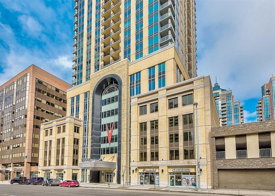 **Welcome to Vogue, one of Calgary’s most sought-after West End addresses, where urban convenience, luxury finishes, and investment potential come together. This freshly painted 1-bedroom condo features south-facing floor-to-ceiling windows with stunning mountain and city views, filling the space with natural light all day. The bright open-concept layout showcases high-quality stainless steel appliances, quartz countertops, and premium cabinetry, while the spacious bedroom offers comfort and calm. The oversized soaker tub in the 4-piece bath adds a touch of everyday luxury, and in-suite laundry provides modern convenience. Step onto your private balcony for morning coffee or evening sunsets, all while enjoying the safety and confidence of an onsite concierge to securely accept your packages and deliveries. Live where the city is at your doorstep: just steps to downtown Calgary for offices, cultural venues, dining, and nightlife, a short walk to 17th Avenue’s boutique shops, cafes, and restaurants, and minutes to Kensington’s eclectic charm, riverside pathways, and vibrant community events. Residents enjoy resort-style amenities including a state-of-the-art fitness center, yoga studio, owners lounge, meeting rooms, and secure underground resident and visitor parking. This condo is available immediately, so you can move in before Christmas and start enjoying all that Vogue has to offer. A prime investment opportunity in a high-demand rental location, attracting tenants who value premium finishes, unbeatable location, and top-tier building amenities. South-facing, professionally updated, and move-in ready — schedule your private showing today and experience the Vogue lifestyle before it’s gone.