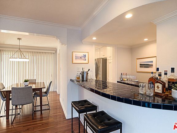 Feels like a home. This 3-bedroom, 2-bathroom light & bright upper unit has everything you need + the location is ideal! Second floor unit (no one above/no common walls), step into an open floor-plan with living room, dining area & gourmet kitchen. Natural bright light with good size window from the living room + balcony off the dining area. Gourmet kitchen with stainless steel appliances, built-in desk & a dry bar which can be used for anything! Primary suite with attached balcony, built-in vanity area, walk-in closet & lots of natural sunlight. Two other bedrooms and updated second bathroom in hall complete the unit. Hardwood floors in the entertaining areas, carpet in bedrooms, recess lights, central AC, alarm system, window treatments, custom closets, stackable in-unit washer/dryer + 2 tandem uncovered parking spots. Community barbecue & outdoor dining area in the back of the building. Individual storage closet in garage area. Adjacent to B.H., close to La Cienega Park & Tennis Club & a few blocks from the trendy Robertson Blvd. Management that truly cares is what makes this building so special. Come Check It Out!