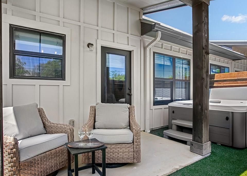 Exceptional investment opportunity in the heart of Fredericksburg! This charming, renovated condo is ideally located just minutes from Main Street, providing guests easy access to shopping, dining, and wineries. Currently operating as a successful short-term rental, the property generated over $50,000 in gross income in 2024. Inside, the well-appointed unit features a spacious king bedroom, full bath, and open living area with a queen sleeper sofa—comfortably sleeping up to four guests. The fully equipped kitchen includes everything needed for an extended stay, while the private backyard retreat offers privacy fencing, comfortable seating and a relaxing hot tub. Turnkey and ready to continue as a proven income producer or as your own Hill Country getaway, this property combines charm, location, and strong rental performance—an unbeatable combination in today's Fredericksburg market.