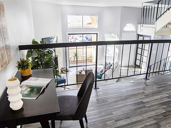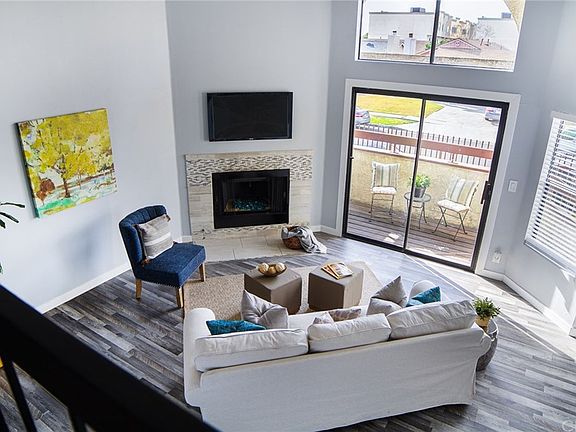Stunning tri-level townhome in Stratford Park offers a large open floor plan with vaulted ceilings, engineered hardwood flooring, and a Nest thermostat that controls your central air and heat. The living room on the first level has a corner fireplace and sliding glass doors leading out onto a balcony. The raised dining area on the second level has lots of natural light flooding in, plus the remodeled kitchen with dark wood cabinets, quartz countertops, subway tile backsplash, newer appliances, and a breakfast bar is perfect for entertaining and gatherings. On the third level, are two spacious master ensuites with separate baths, both have newer carpeting and walk-in closets, and one having a sliding door giving access to balcony plus double sink vanity in the bath. There is a private enclosed two-car garage with a large bonus storage area for your convenience. This is a gated community with a pool and spa for resort-like relaxing.