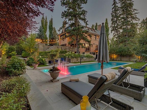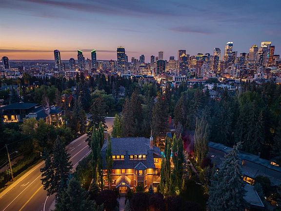 Introducing a modern architectural masterpiece in Calgary’s prestigious Mount Royal. Situated on a rare, gated half acre lot along exclusive Prospect Avenue, this 6,725 sq ft estate harmoniously blends timeless design with contemporary sophistication. Surrounded by mature trees and immaculate landscaping, the striking sandstone and brick exterior with copper detailing sets the tone for the elegance within. This iconic property has been thoughtfully reimagined to honour its architectural heritage while embracing contemporary luxury. Inside, every detail reflects intentional design and refined living. Custom millwork, designer lighting, limestone and marble finishes, and integrated smart home technology, including full Lutron controls, create a seamless balance between historic charm and modern comfort. Crafted for those who value elevated entertaining and effortless daily living, this truly special home delivers an unparalleled lifestyle. A timeless centre hall plan sets a sophisticated tone, leading into a home where original 1912 quarter-sawn oak floors grace the main level, creating an elegant foundation for the curated interiors. The grand living room is anchored by a limestone fireplace and flows seamlessly into a formal dining room with beamed ceilings and custom wainscotting. Beyond, the original porch has been transformed into a sun filled solarium with coffered ceilings for an ideal space to enjoy morning coffee, intimate dinners, or evening cocktails. Sliding glass doors extend the living area to a private rear terrace, perfect for effortless indoor/outdoor entertaining. The heart of the home, the kitchen, balances beauty and function with Wolf, Sub-Zero, and Miele appliances, sleek Siematic cabinetry with glass panelled uppers, and luxurious marble countertops designed for everyday living and elegant gatherings. The thoughtful layout offers intentional separation between public and private spaces. Upstairs, the serene primary spans half the second level featuring dual walk-through closets, a lavish 6pc ensuite with a volcanic limestone soaking tub, and an east facing sunroom ideal for wellness routines or quiet reflection. Two additional bedrooms and a full bath complete the floor, while the third level offers a flexible lounge, two more bedrooms, and a 4pc bath. The lower walk-out level boasts an inviting billiards room with panelled walls, 2pc bath, and a custom-built bar creating the perfect setting to gather and celebrate life’s milestones. Outside, a private oasis awaits with a sandstone terrace, wood-burning fireplace, waterfall, and a dazzling lap pool with fountain as the centrepiece. Lush gardens, fruit trees, a 'smart' 22'x11' greenhouse with heated marble floors and automatic ventilation, and a putting green complete the setting. Minutes from top schools, tennis courts, the Glencoe Club, dining, and culture, this landmark estate blends heritage, innovation, and intentional design.