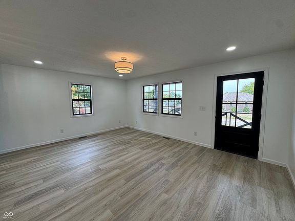 Wow, This 3 bedroom 2.5 bathroom craftsman style home has been beautifully updated! Inviting new covered front porch with trendy front door and all new black replacement windows on the main level. Walking in, you will find an open concept between living room and kitchen. Updated vinyl hardwood flooring throughout. Stunning Kitchen has all new solid cabinetry with solid surface countertops. Center island containing beverage and wine chiller. Refrigerator, gas, stove, microwave, dishwasher, and beverage chiller all included in purchase. Master bedroom has ensuite bathroom containing double sink and walk-in tiled shower. Walk in closet with shelving. Full basement, half the basement is finished other half for storage and mechanicals. The house has an updated 200-amp breaker panel. Furnace and air conditioner were brand new in October 2024 . All new plumbing. Most of the ductwork and wiring have been redone. Roof was replaced 2023 and new shingles where the porch was added. Large deck added in the back for entertaining and relaxation. Two car detached garage. Long concrete drive for extra parking. Fantastic central location just blocks from school. Close to the parks, shopping and walking trail.