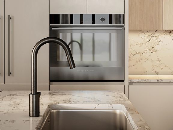 Clean architectural linesWarm natural materialsBright balanced living spacesWide-plank white oak flooringPrivate patios or balconiesNatural lightQuiet luxury