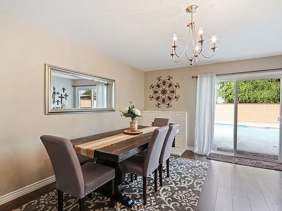 This beautifully updated 3 bedroom 2 bath home is waiting for you! This home has great curb appeal as you drive up. Hardwood laminate flooring mostly through the home and carpet in two bedrooms. The kitchen has been remodeled with Quartz countertops, subway tile and custom cabinets. Stainless steel appliances are included! The laundry room is conveniently off the kitchen and has access to the back yard. Dining room with fireplace helps sets the mood while entertaining family and friends! Master Suite has two wardrobe closets as you walk towards your master bathroom. A sliding glass door provides access to the patio and sparkling pool! The private backyard is great for entertaining! Central Air is a plus during the Summer! There's also a two car garage. If you're looking for a great pool home at an affordable price than this is it! Come see it soon!