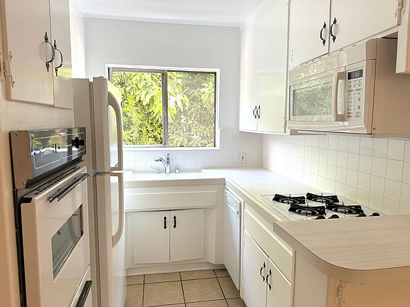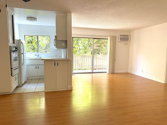 Rear unit with a balcony facing East. Wood and tile floors, entrance closet, refrigerator, gas oven and cooktop, 2 sets of closets in bedroom, pool, AC, secure parking for 1 car, garage storage locker, built-in microwave. Not run by a management company but the original family that built it. Rent Control Apartment (i.e. LA raised rents 4% and WeHo only raised it 1.25%). Select units with backyards are pet friendly.