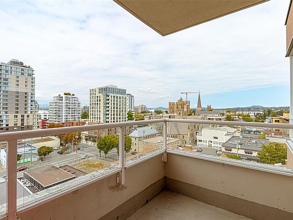 Asking $125k LOWER than BC ASSESSMENT! This 800 sqft One BED+DEN Corner Unit has ALL the vibrant Downtown life you need to offer. Experience great views of Victoria's city, mountain and ocean from your 10th floor balcony in this west facing Manhattan Suite. The generous layout features a massive bedroom and a decent size Den that can be used as a second bedroom/office. Open-concept living room, kitchen and on-site laundry completes the bright unit with coziness and convenience. This steel & concrete high rise was built by BOSA and well-managed with affordable low strata fee, hot water included, pet friendly, and caretaker onsite. Besides, gym, guest rooms, meeting room and storage is also available. Underground secure parking within the building is wait-listed or can be rented (see agent notes for details). Being on Yates means having urban life in handy. Welcome to this EVERYTHING home.