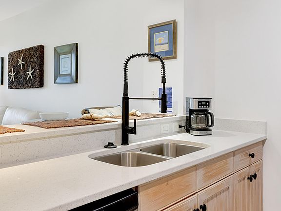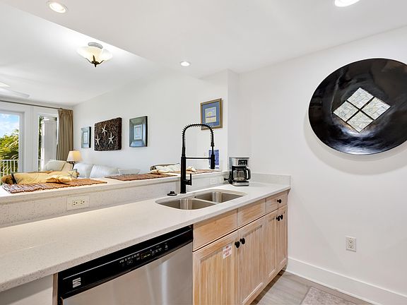 2.5% VA Assumable Loan*! Beautifully renovated resort condo, ideally located in the heart of the Village of Baytowne Wharf. This exquisite condo features hard surface flooring throughout and elevated furnishings ideal for either a primary residence or vacation rental. Experience the elegance of the remodeled bathroom, complete with a spacious walk-in shower, sparkle white quartz countertops, and a copper sink that adds a touch of sophistication. The updated kitchen features sleek sparkle white quartz counters, elegant hardware and stainless steel appliances. Enjoy the new water heater, front loader washer/dryer and Nest thermostat! The primary bedroom and living room both offer access to a covered balcony, where you can unwind and soak in the serene views of the amenity terrace and pool. Whether you're looking for a luxurious retreat or an investment opportunity, this condo in Baytowne Wharf offers an unparalleled lifestyle with endless dining, shopping, and entertainment options right at your doorstep.