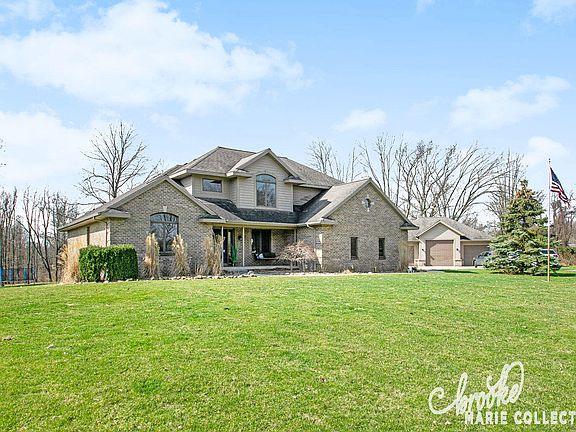 Welcome to your luxurious mini-estate, tucked into a gorgeous park-like setting on 10 incredible acres. This home has been generously updated throughout. Upon entering, step into an open concept, completely remodeled kitchen, dining and sitting areas complete with a one-of-a-kind brick fireplace. The views from this space onto the property are amazing. Home office, main floor laundry, and mud room complete the level. A three season room offers additional views of property. Main floor owner-suiteis spacious with walk-in closet, additional closet, and soaker tub. Skylights throughout offer an abundance amount of natural lighting. Private drive has 10 homes - 6 of which are Forest Hills Schools and 4 homes are Lowell. Both buses pickup at the end of the road. 2 additional oversized bedrooms with walk- in closets and full bath top off the upper level. Lower level boasts new vinyl plank flooring through out, entertainment spaces, 4th bedroom and theatre room/ bedroom.